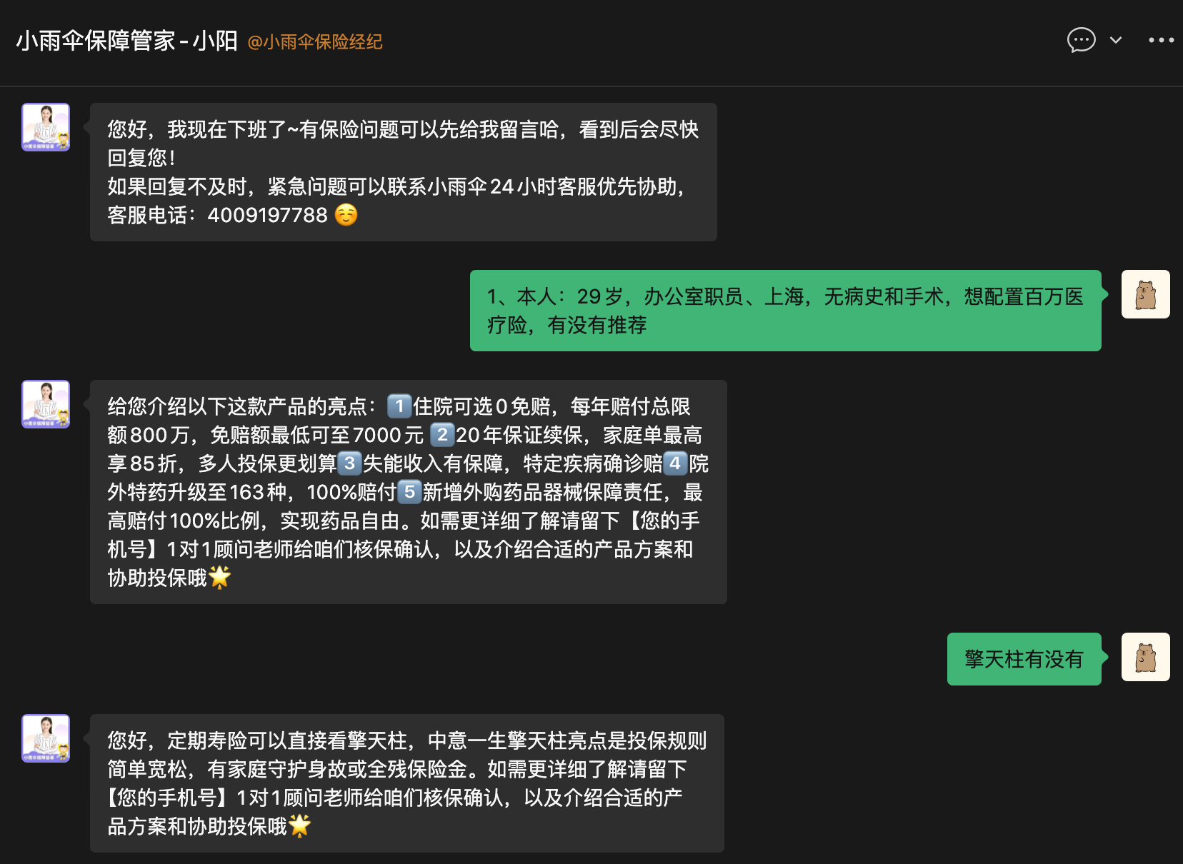 面向全业务场景的各场景保险咨询Agent,降低各场景人工回复投入时间