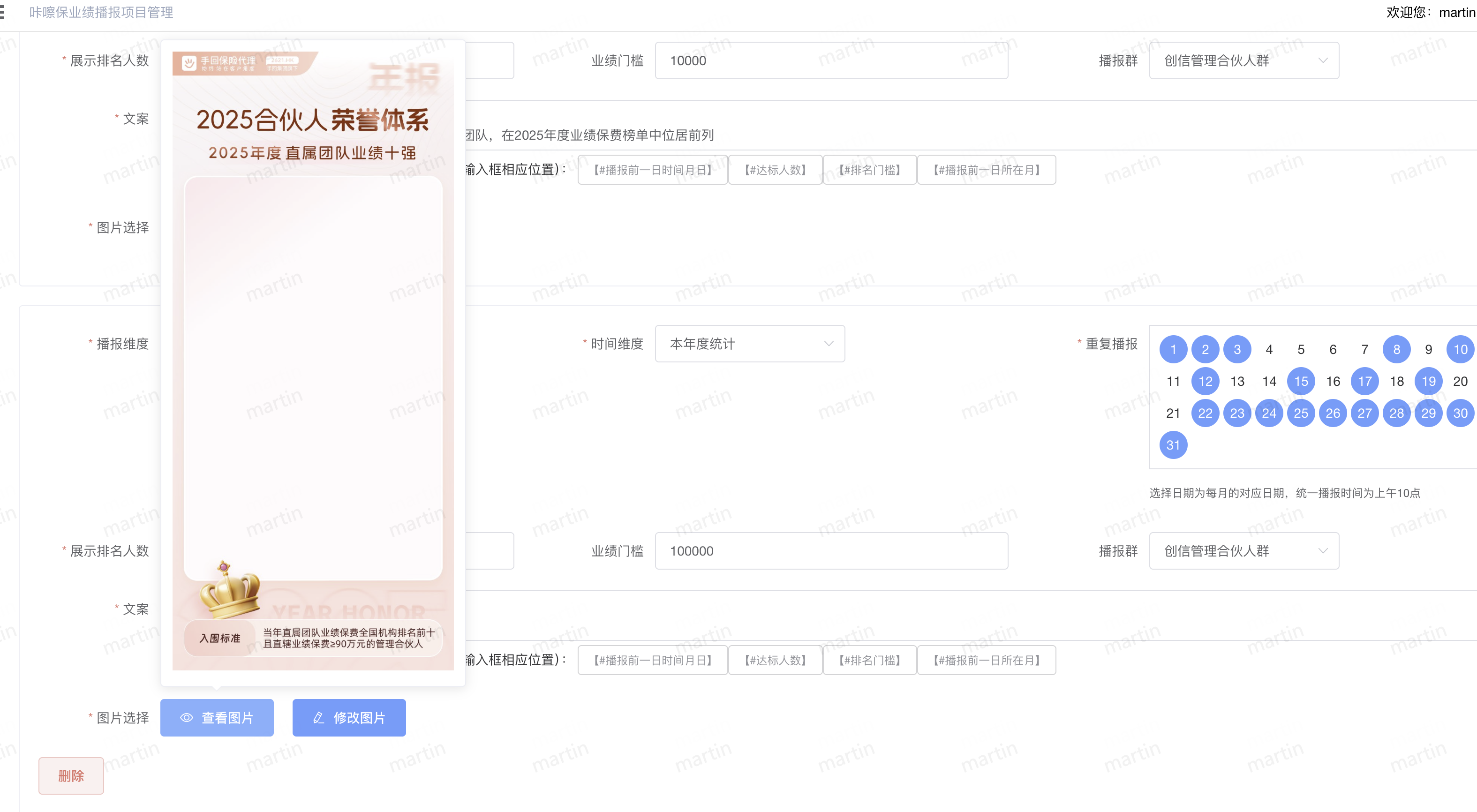 荣誉排名播报/喜报补发